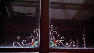Staff and volunteers painstakingly decorate the windows with festive paintings. The whole center changes for the holiday season. More to come........
