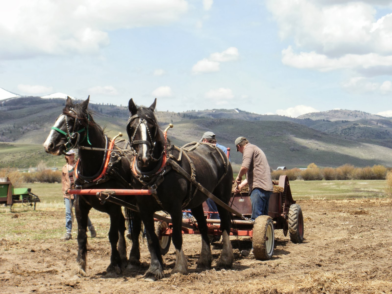 Our family has been lucky enough to be able to keep the traditions of our ancestors in that my husband's side of the family were freighters. It was my husband's dream to learn to drive horses and train a team of his own. This dream was not realized until 1994 when we moved home to the Bear Lake Valley. We had land to keep horses and means to feed them. My husband has now trained about five teams of horses and is quite a teamster.