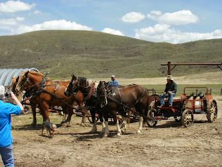 In 2008 my second oldest daughter married a local rancher who's father also had a love for driving teams of horses. The pictures you have been viewing in this blog is of one Sunday three years ago when we all decided to get together and work some ground. My daughter's father in law saved 120 acres to be plowed and fertilized. He had some corrals that needed cleaning out so we went to town "spreading sunshine"! What a fun family experience. Beautiful warm spring weather and great company.